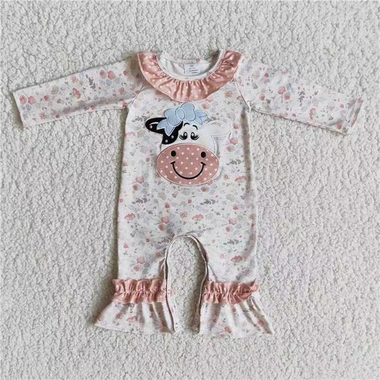 promotion 6 A23-5 cow embroidery floral ruffles girl long sleeve romper 20230530 RTS