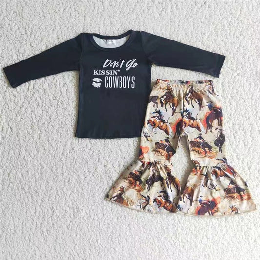 cartoon black ruffles raglan long sleeve bell bottom pant girl outfit