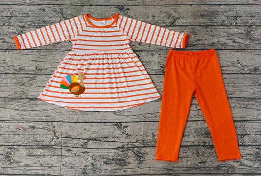 GLP1604 embroidery turkey thanksgiving girl outfit 202410 sibling RTS
