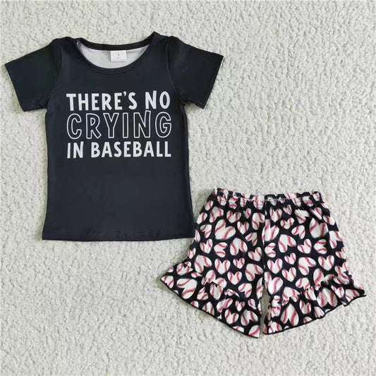 GSSO0023 there's no crying in baseball black short sleeve shorts girl outfit 20230316 RTS
