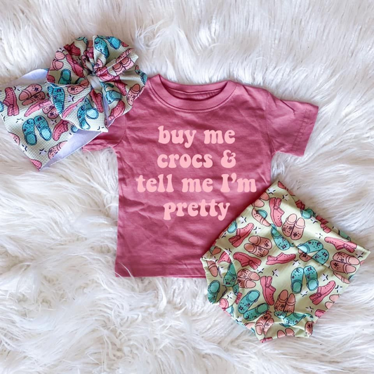 promotion 3PCS(choose headband below) pink top buy me slipper print short sleeve shorts girl outfits 0309