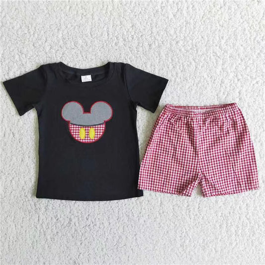 promotion D5-15 cartoon mouse embroidery red plaid boy short sleeve shorts outfits RTS