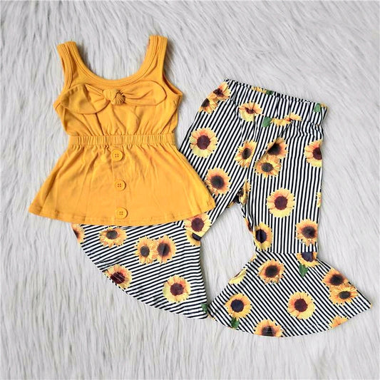 vest 0802 RTS shoulder straps top yellow bow tunic sunflower stripe sleeveless bell bottom pants outfits
