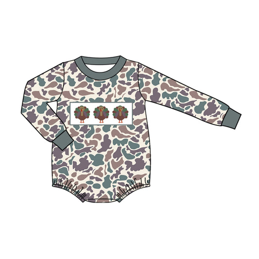 western embroidery turkey camo LR1846 sibling boy romper 202411 RTS