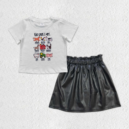 组合GSD0521 western animals girl leather skirt short sleeve girl summer outfit 20231017 RTS