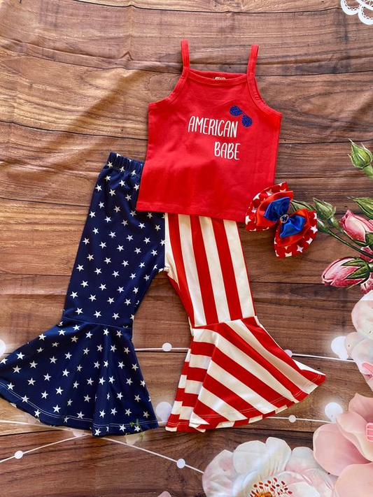 GSPO0541 RTS 4th July USA red denim bell jeans western short sleeve girl outfit 20230302