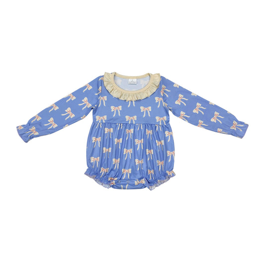GLP2143 cable knit cotton bow blue Christmas girl outfit 202411 RTS