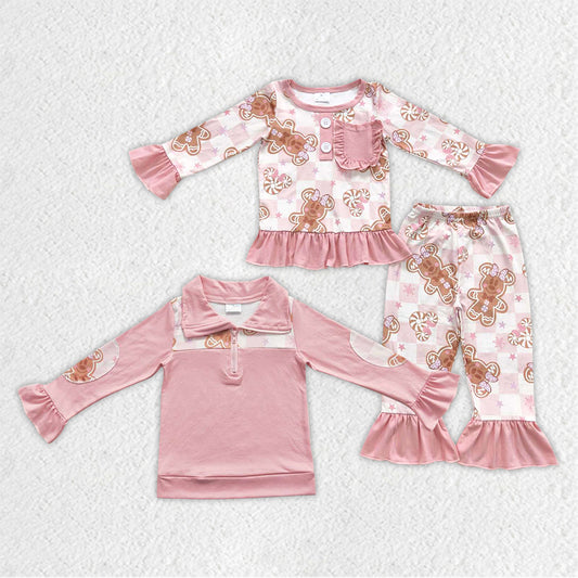 GSP0548 RTS Christmas Gingerbread long sleeve girl pajamas outfit 20230814