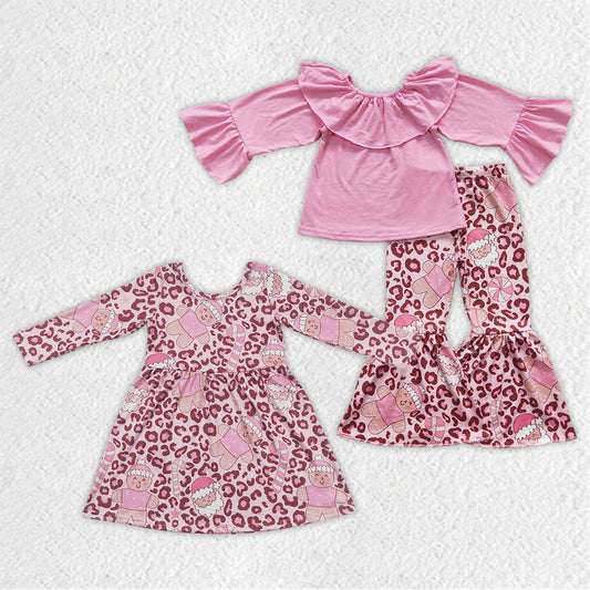 GLP0673 Christmas Santa long sleeve girl pink leopard off shoulder outfit 20230830 RTS