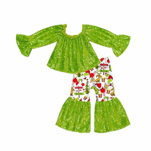 GLP0632 preorder Christmas red sequins green long sleeve pants girl outfit 20230707