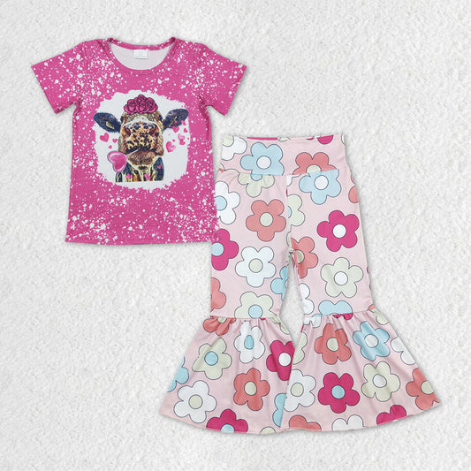 GSPO1184 western cow love valentines flowers short sleeve girl outfit RTS 20231204