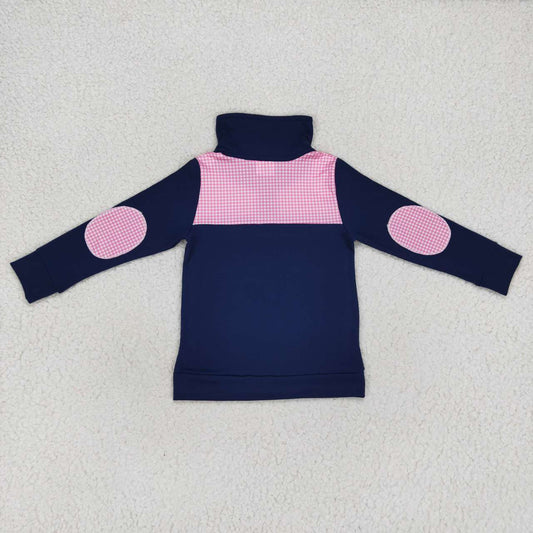 BT0290 RTS pink plaid zip up girl long sleeve coat pullover top 20231010