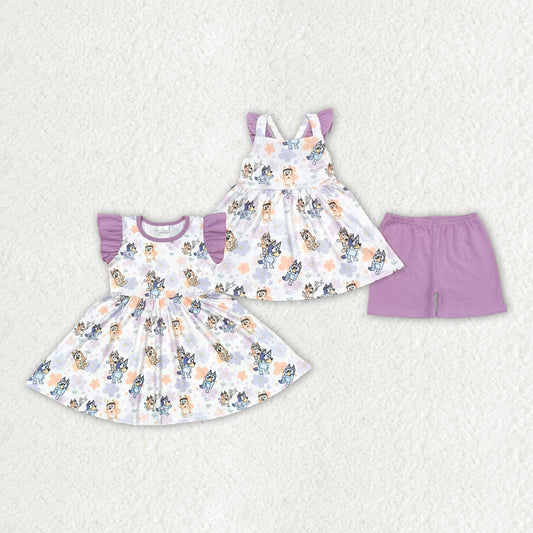 GSD1060 flower bluey dog short sleeves girl dress 202405 RTS sibling