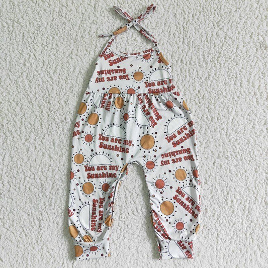 SR0051 RTS you are my sunshine orange sun print girl sling overall 20230308
