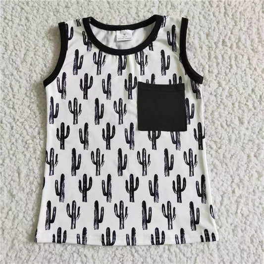 BT00067 black cactus print boy vest tank shirt top RTS 20230328 rts
