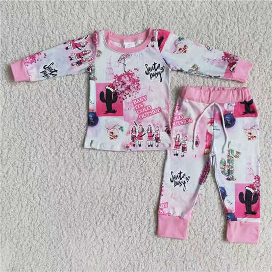 promotion RTS 6 A17-4 Christmas girl cold outside pink cartoon cactus long sleeve pajamas girl outfit 20230606