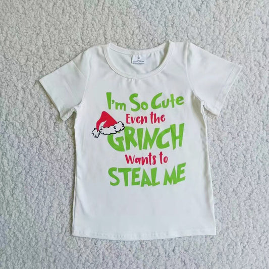 Christmas green cartoon white short sleeve girl top D4-1 RTS 20230527