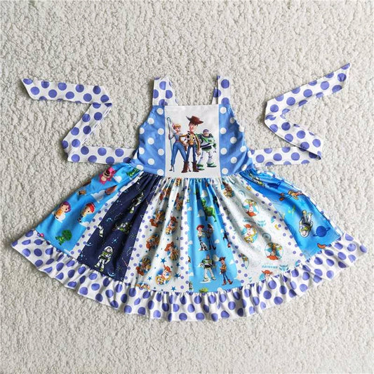 promotion RTS A2-10 blue toy cartoon patchwork belt sleeveless short sleeve girl dress 20230613 RTS