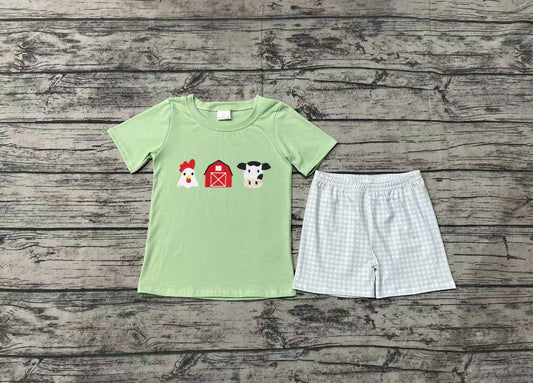 BSSO1067 embroidery farm horse cow boy summer outfit 202412 RTS
