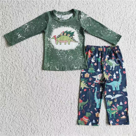 Promotion 202408 RTS promotion BLP0105 christmas dinosaur green long sleeve boy pajamas outfit set RTS