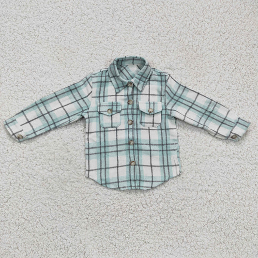 BT0169 green plaid long sleeve Cotton boy top shirt RTS 1124
