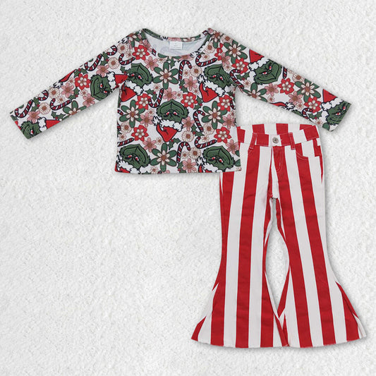 GLP0935 组合 long sleeve Christmas grinch stripe pink denim jeans girl outfit 20231004