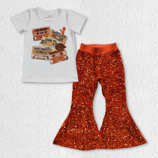GSPO0955组合 fall vibe sequin pants short sleeve top girl outfit 20231004 RTS