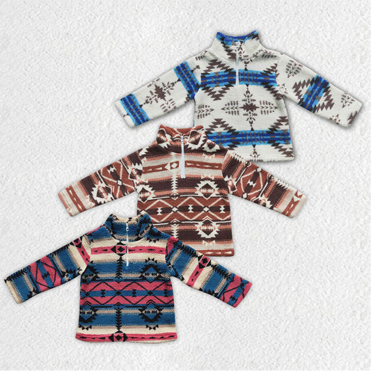 BT0290 RTS pink plaid zip up girl long sleeve coat pullover top 20231010