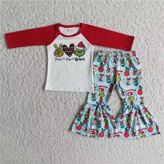 christmas green head Cartoon girl red long sleeve bell bottom pants outfit