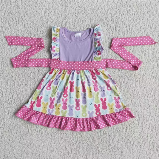 promotion B11-21 Easter Rabbit Cartoon Pink Polka Dots Belt Puffy Short Sleeve Dress 20230308 RTS