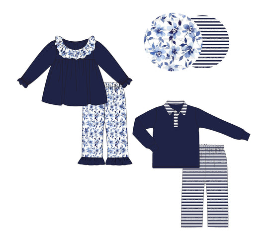 GLP1870 solid cotton blue flowers long sleeve girl outfit 202408 sibling preorder