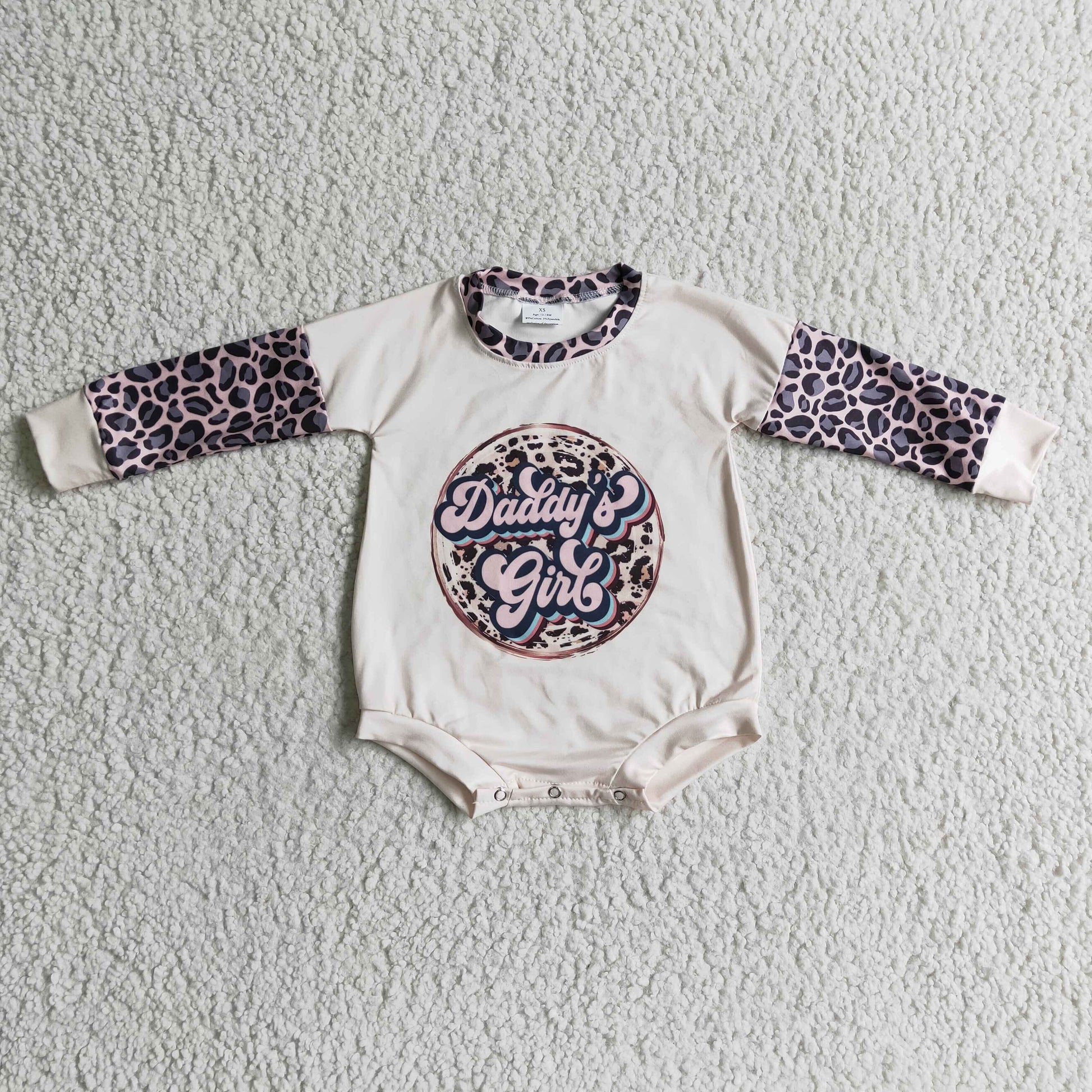 1119 RTS pink leoapard dady girl long sleeve girl romper LR0221