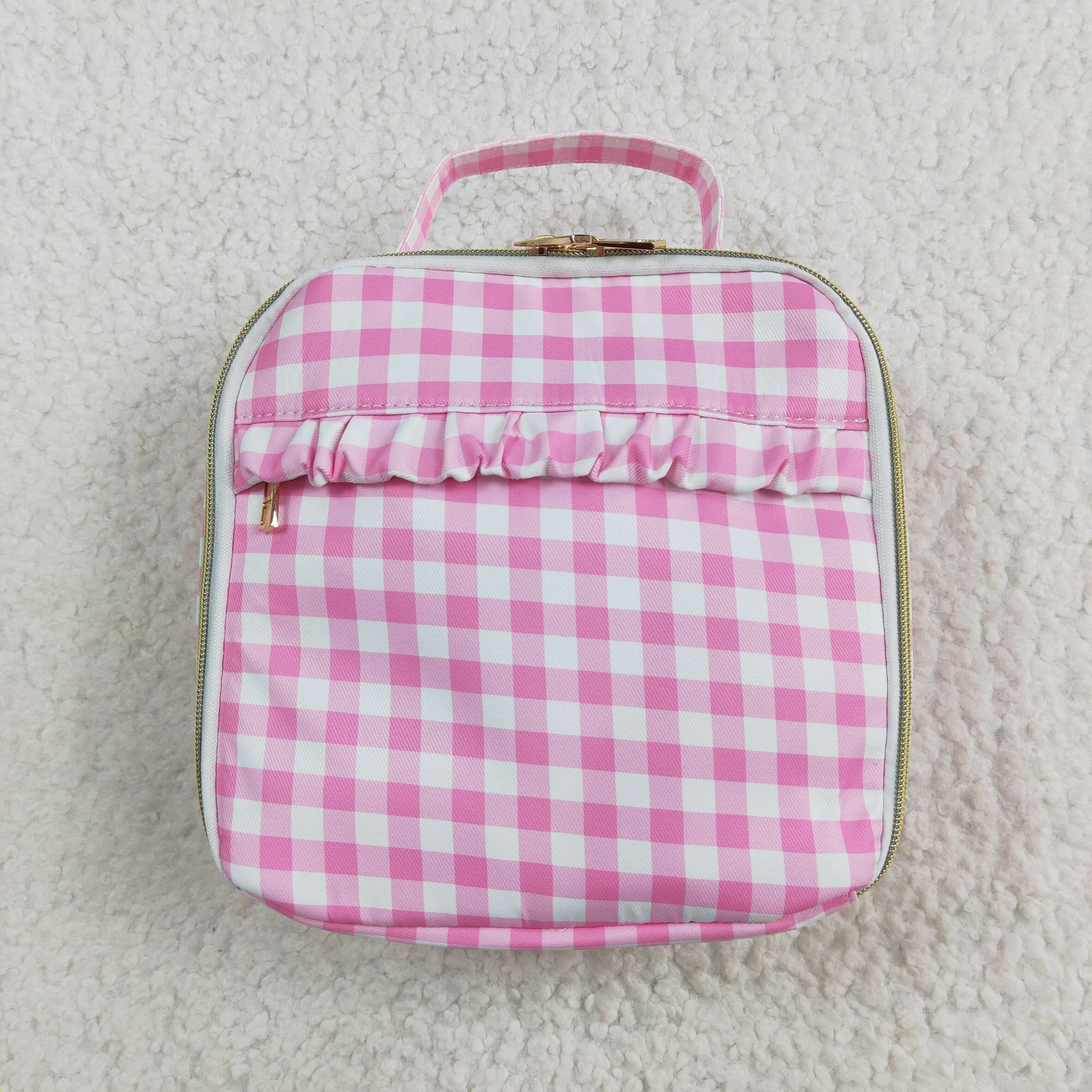 BA0283 sibling western RTS pink plaid meal box Lunch box bag 3.5*8.5*8.5 inches