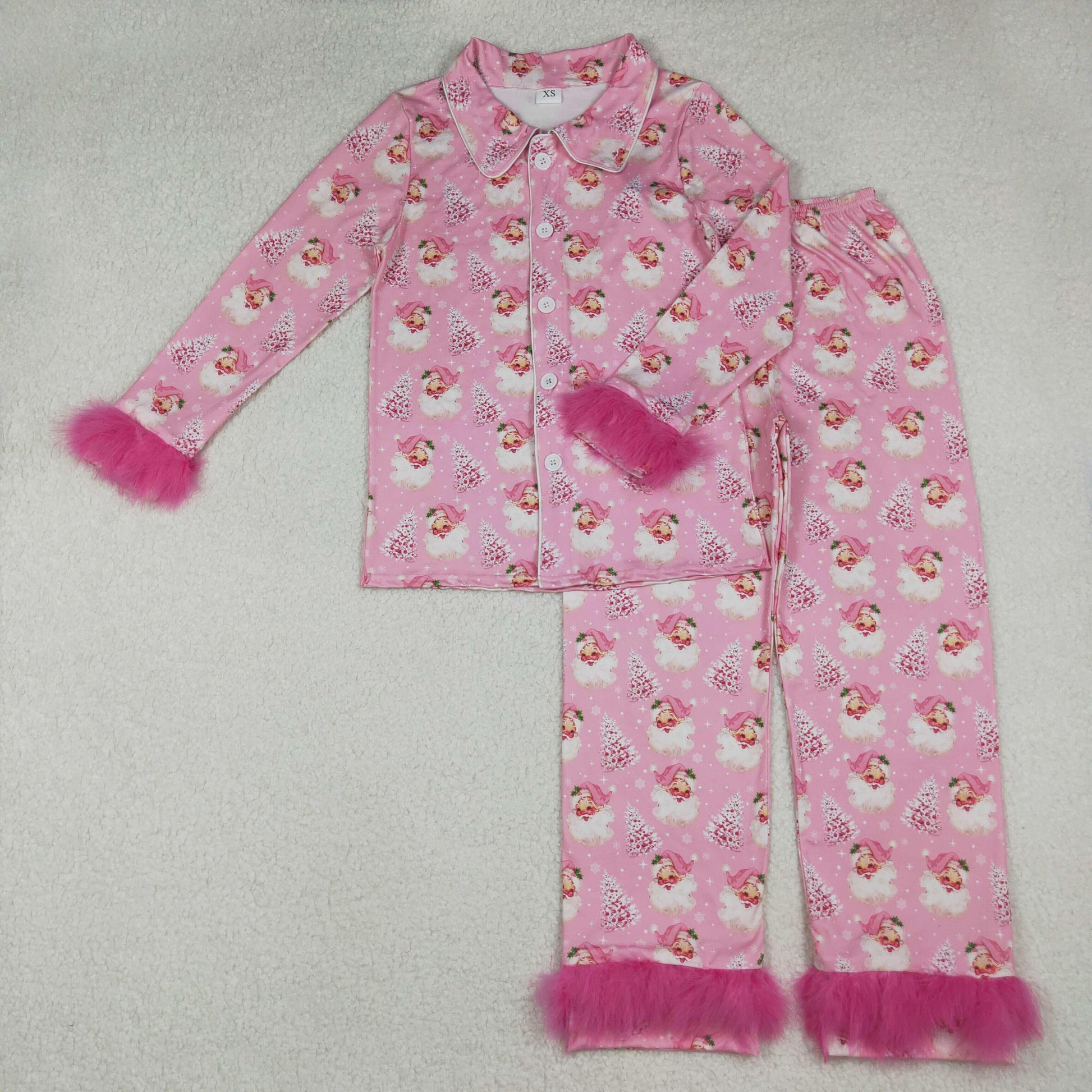 GLP2718 RTS adult pajamas Christmas Santa bow feather fur fluffy sleeves pink long women outfit 202509 sibling