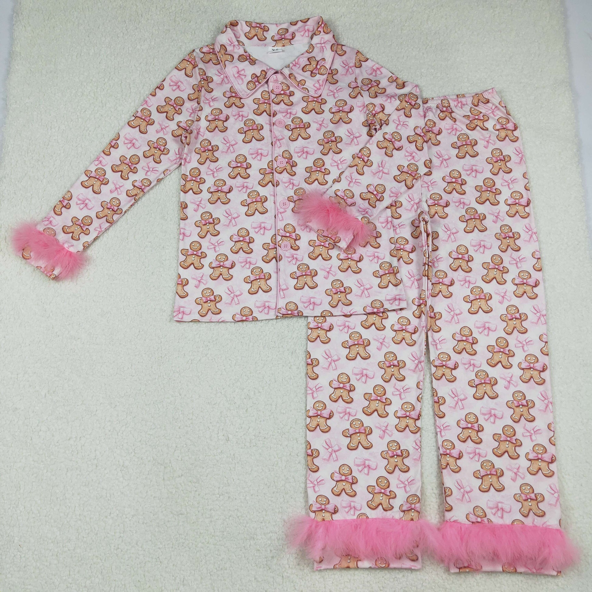GLP2716 RTS adult pajamas Christmas Santa bow feather fur fluffy sleeves pink long women outfit 202509 sibling