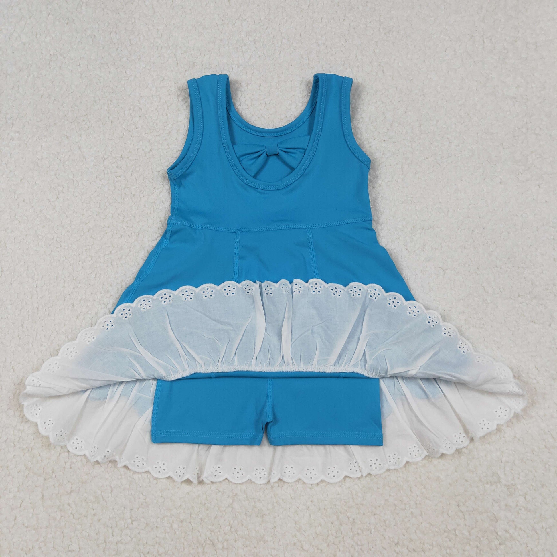 GSD2680 blue solid color yoga girl dress 202509 RTS