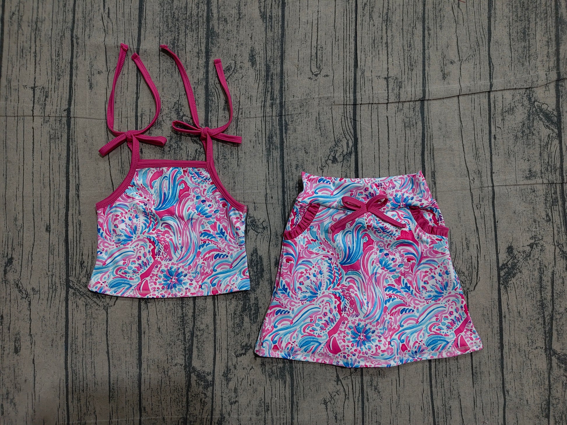 GSD3728 sea grass 4th July bow Yoga kids girl dress 202603 RTS