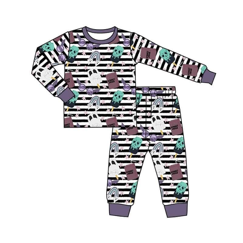 preorder 0711 halloween cartoon white head long sleeve pants purple pajamas girl outfit
