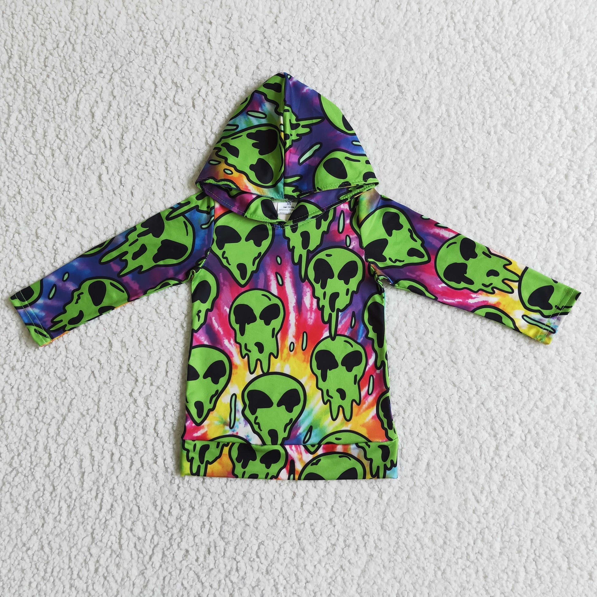 0819 RTS halloween green skull goast long sleeve boy hoodie top coat pullover BT0049