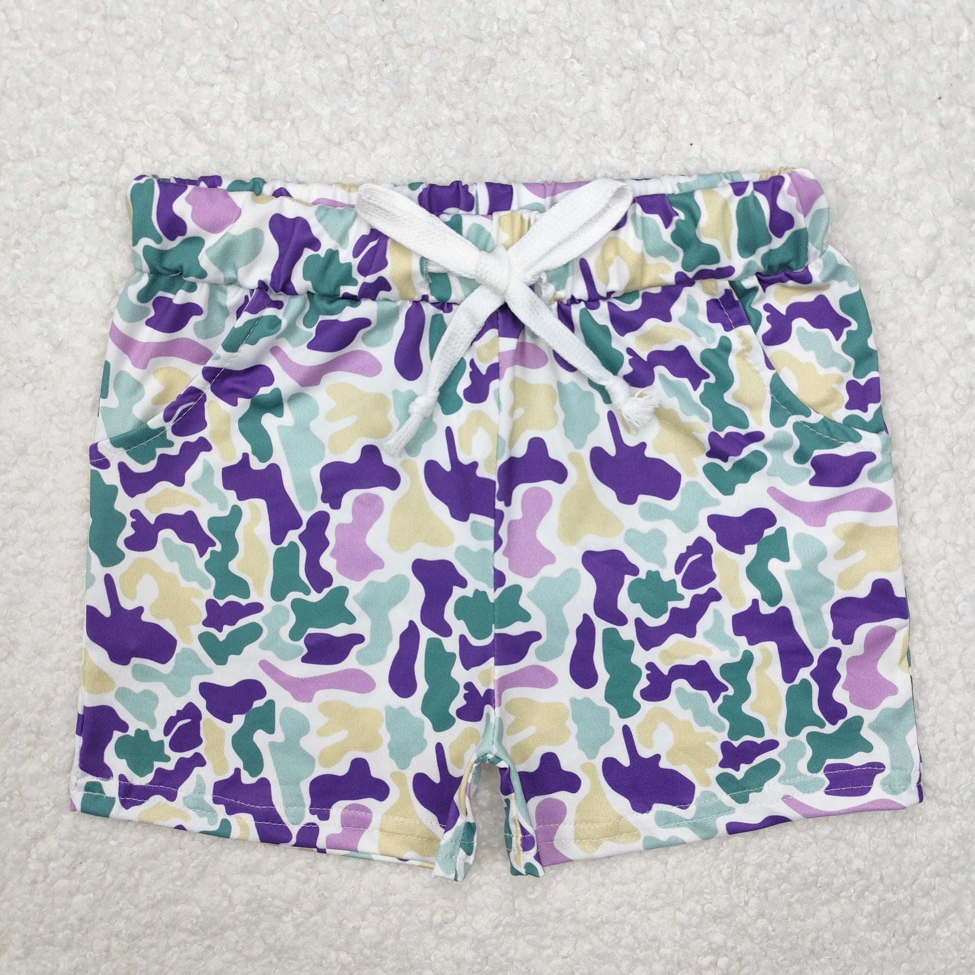 SS0433 Mardi Gas purple camo western girl shorts 202501 RTS