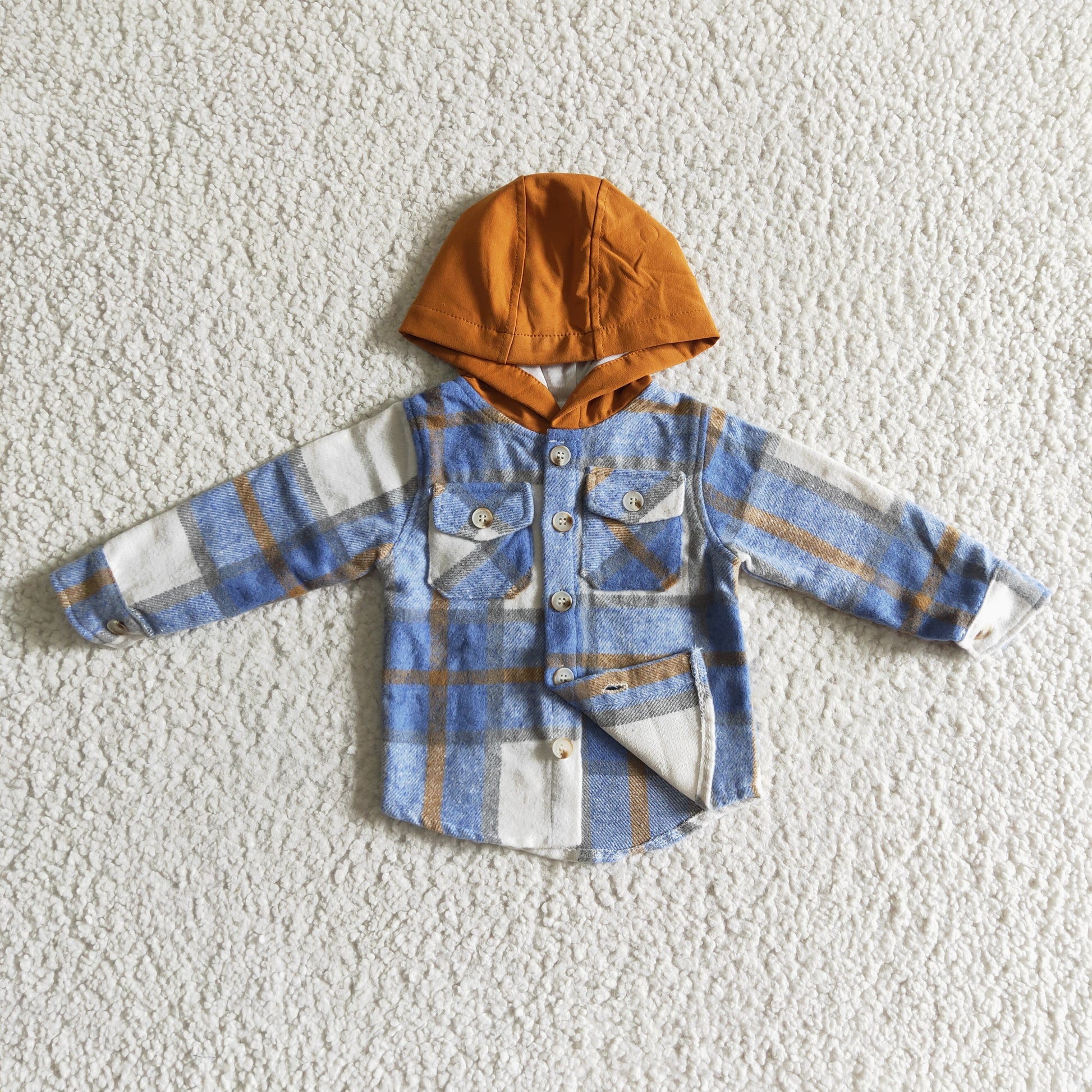 BT0074 blue plaid shirt long sleeve Cotton pullover boy hoodie top 1029 RTS