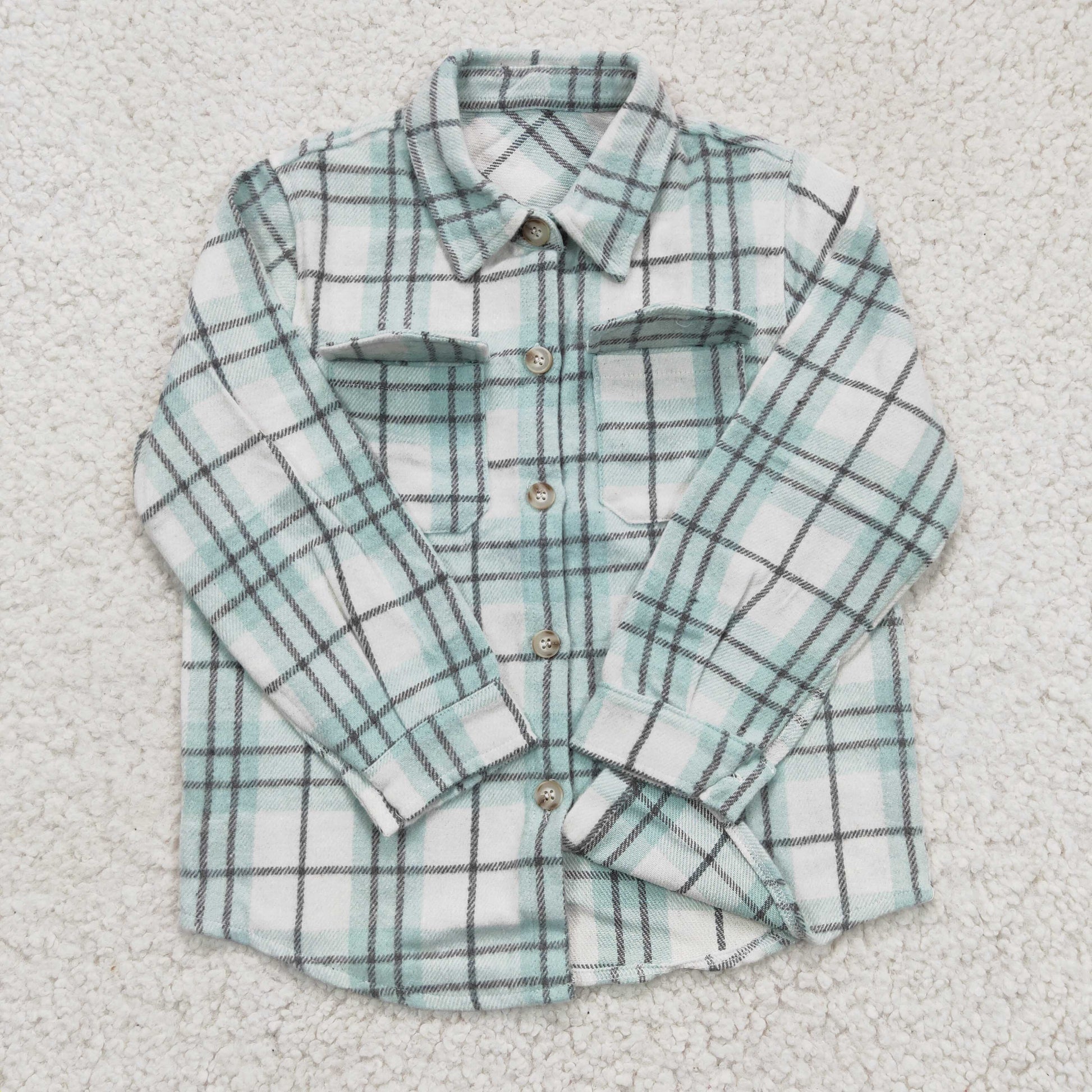 BT0169 green plaid long sleeve Cotton boy top shirt RTS 1124