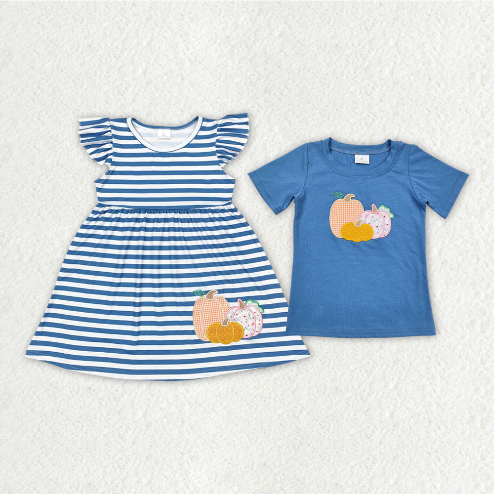 BT0675 embroidery pumpkin top tee Halloween boy t-shirt 202407 RTS