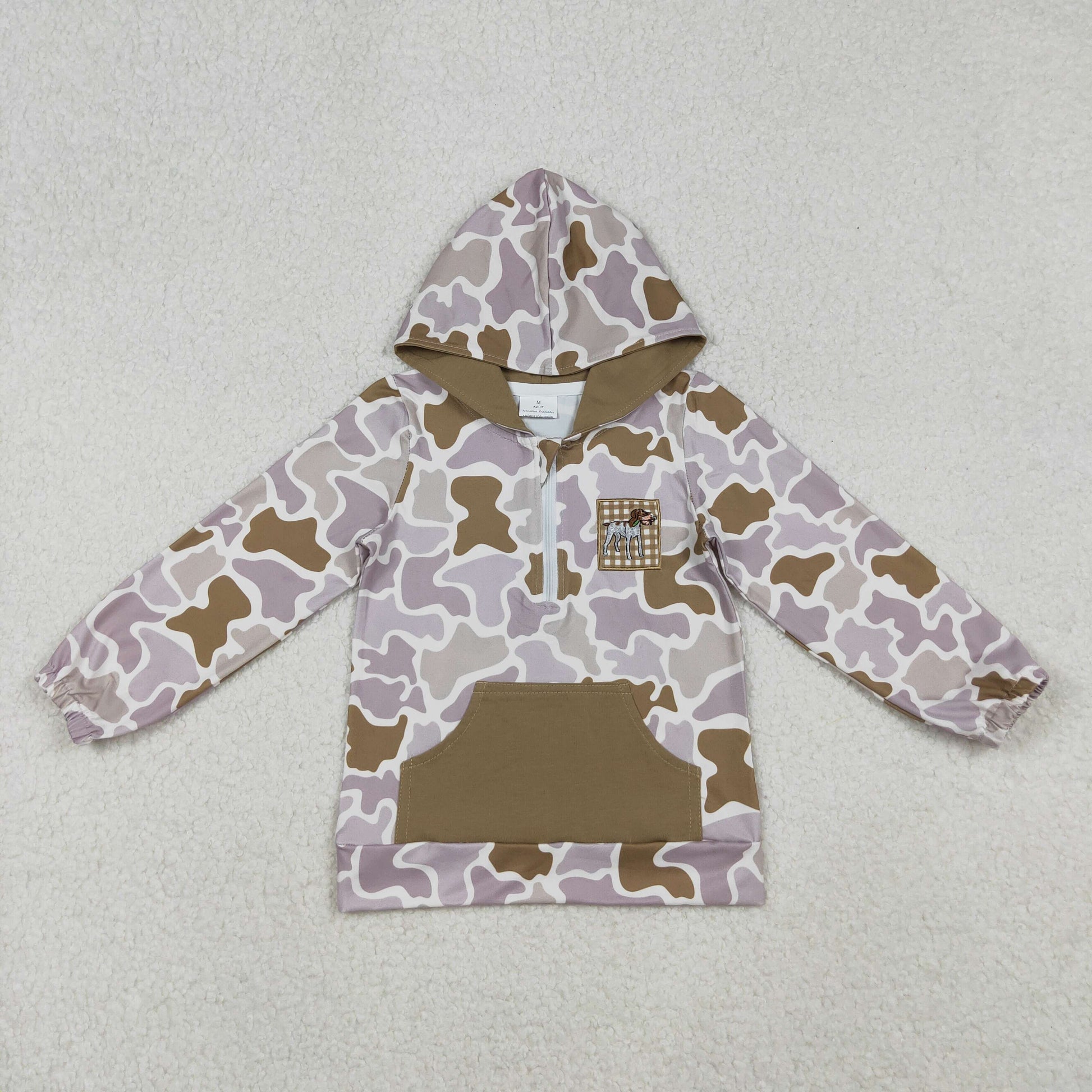 BT1302 embroidery dog long sleeve boy hoodie top coat camo pullover 202509 RTS
