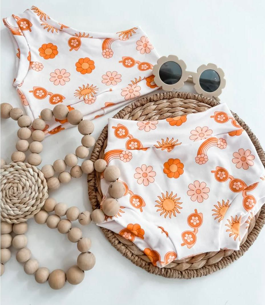 GBO0117 preorder one shouder short sleeve bummie rainbow sunflower girl outfit 20230221