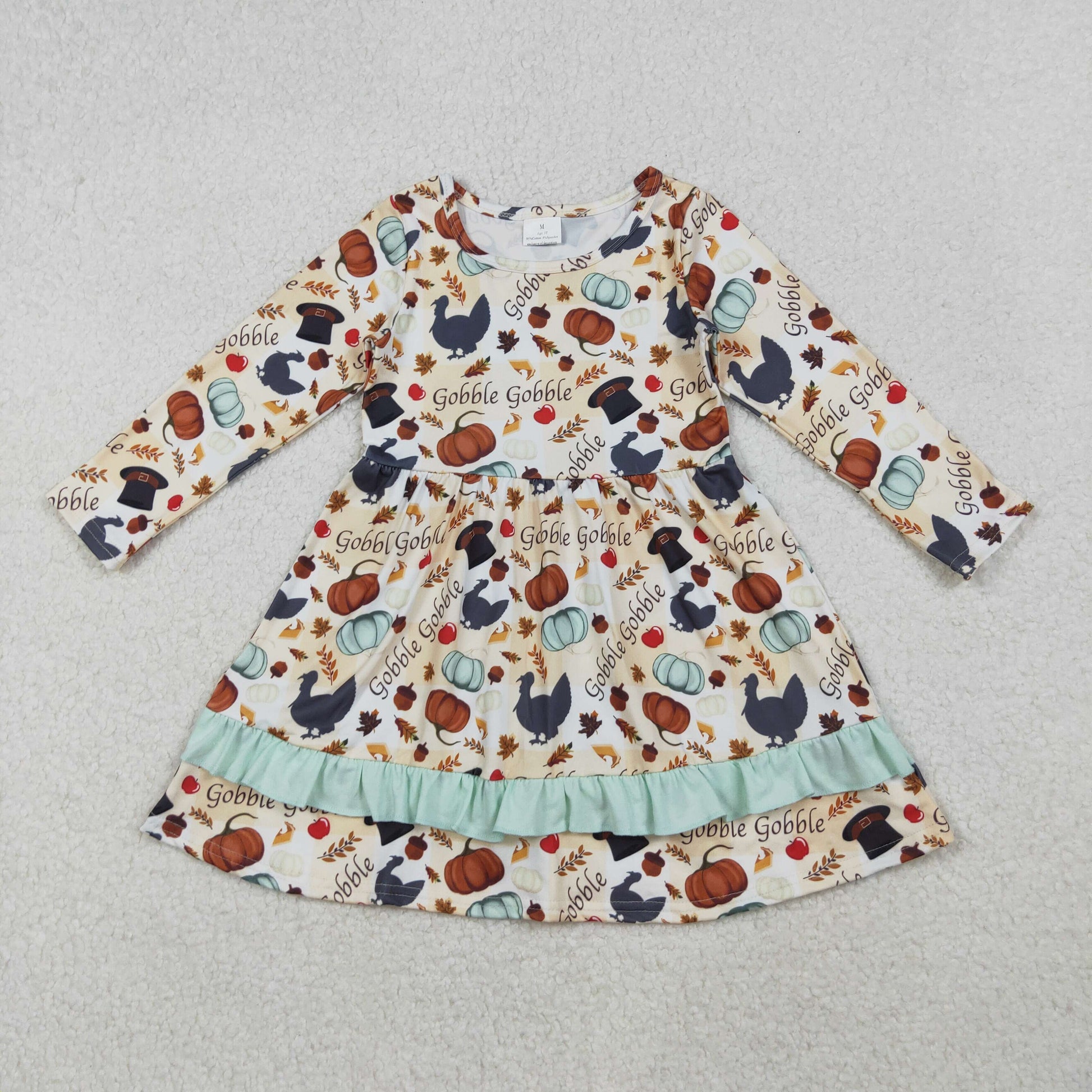 GLD0789 gobble turkey pumpkin western sibling girl dress 202509 RTS