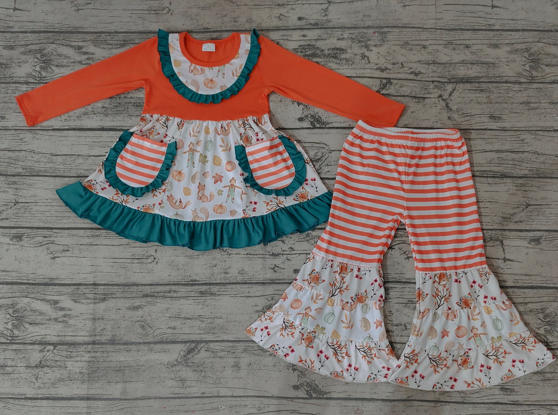 GLP0743 RTS western halloween pumpkin fall long sleeve kids girl outfit 20230928
