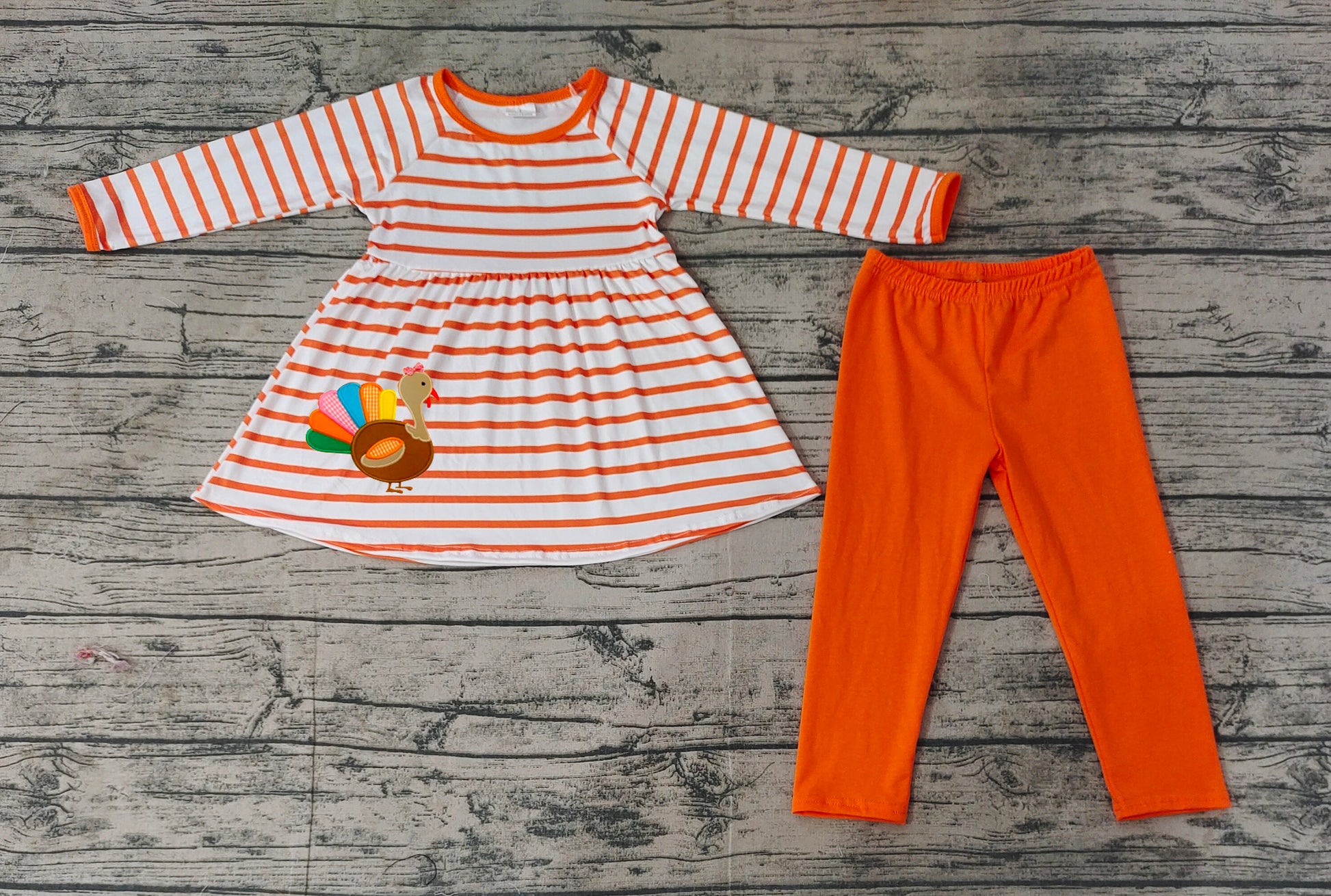 GLP1604 embroidery turkey thanksgiving girl outfit 202410 sibling RTS
