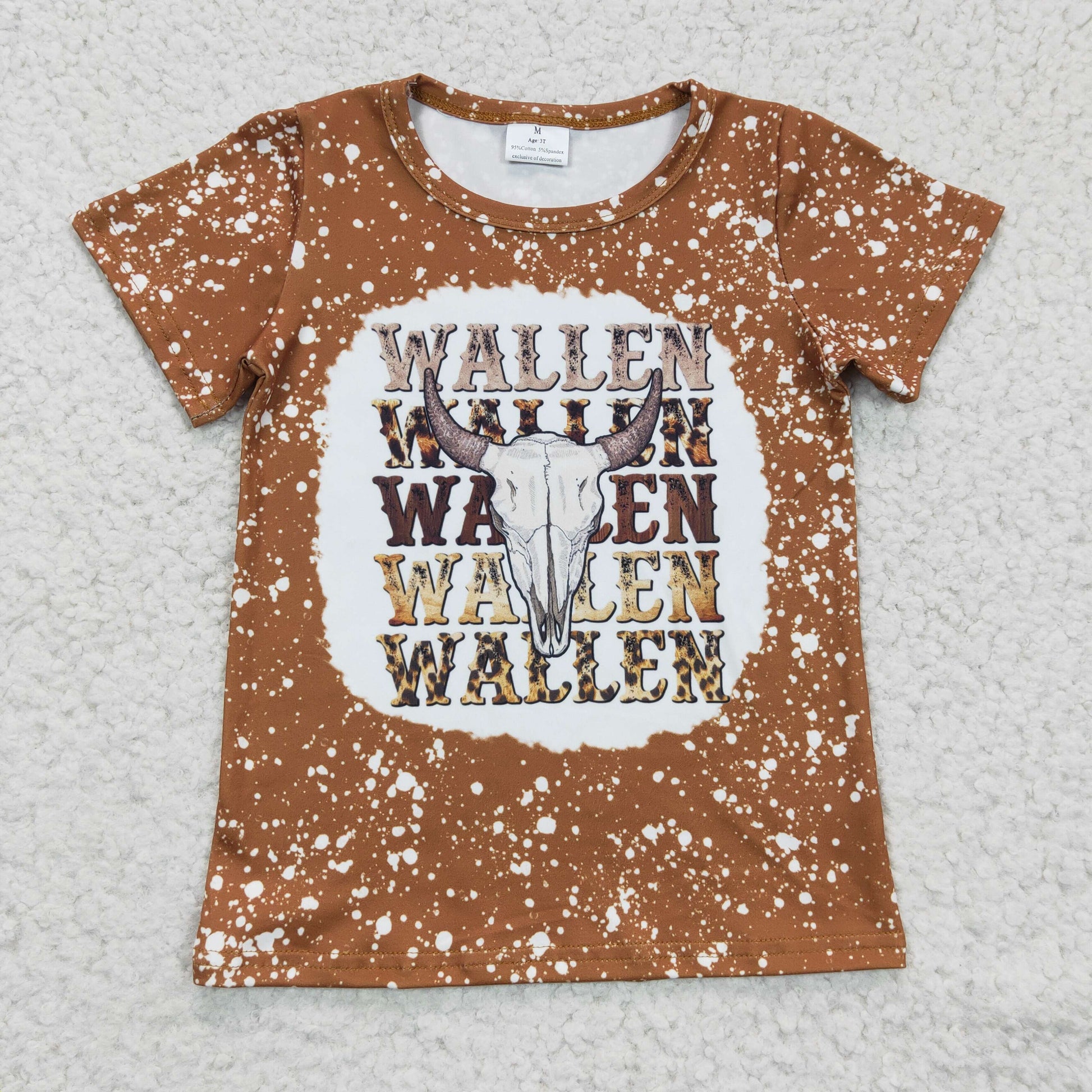 GT0115 willem western kids top cow short sleeve brown girl top tee t-shirt 20230109 RTS