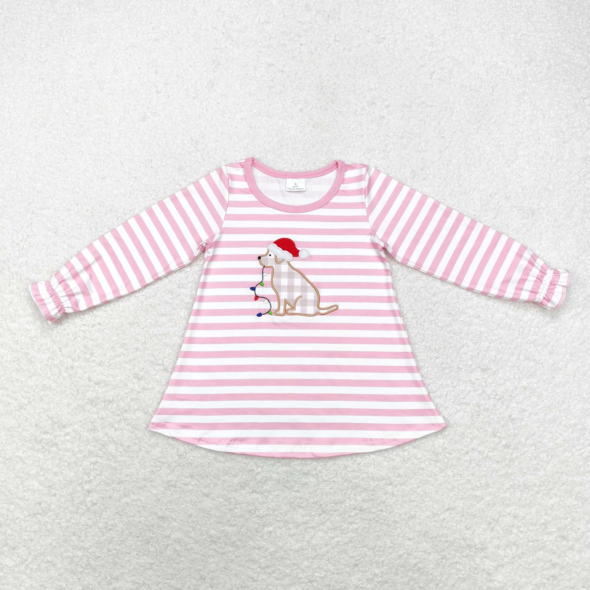 GT0659 Christmas hat dog embroidery cotton girl shirts 202408 RTS